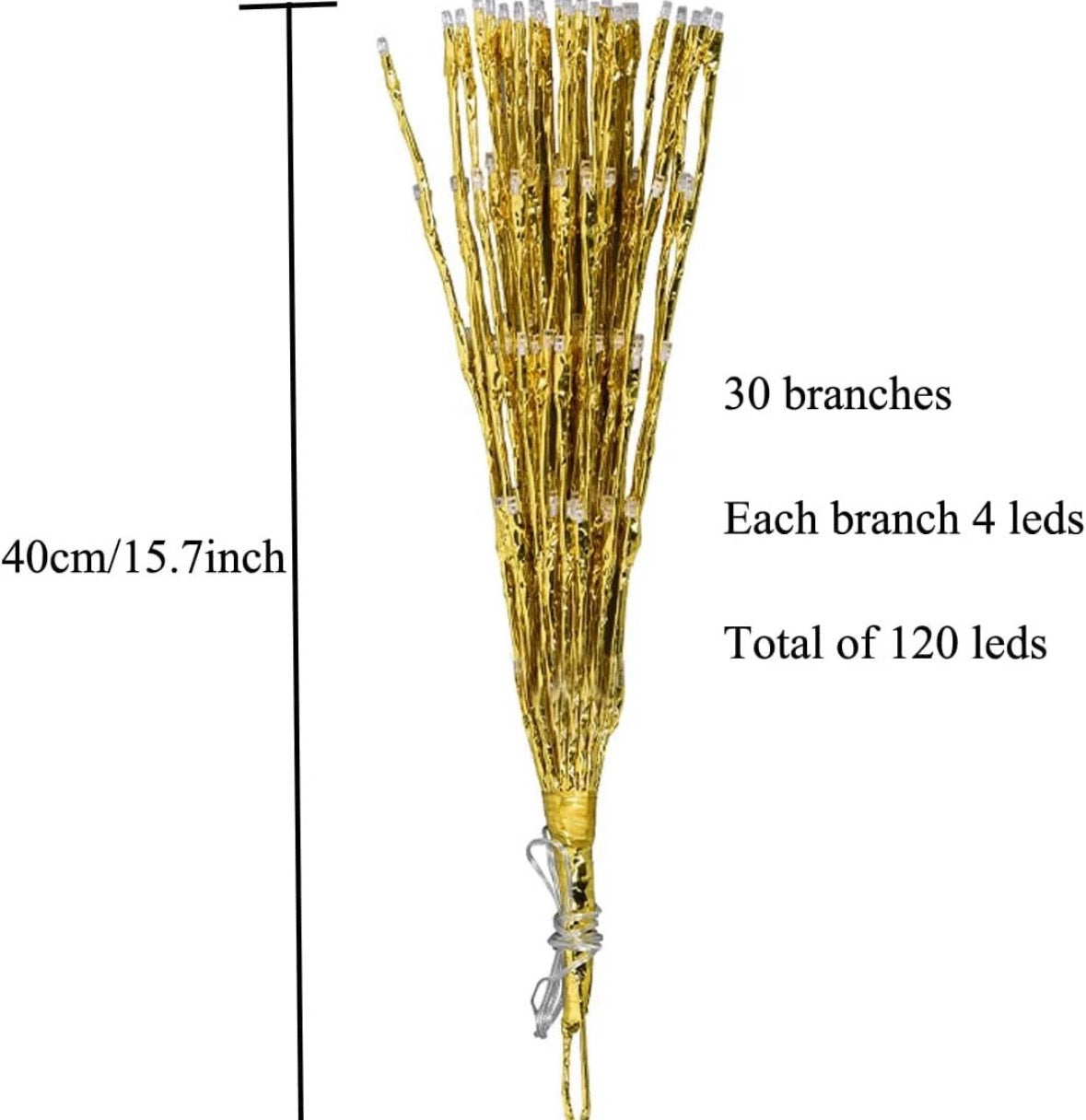 Warm white polestar light with electric outlet. It works perfectly as a tree topper. Made of 30 branches, 4 LEDs in each branch with a total of 120 LEDs.
